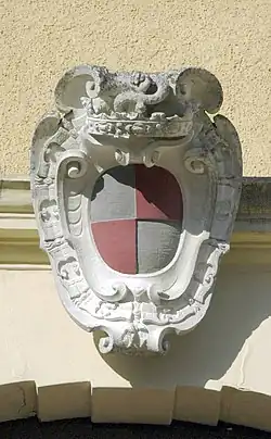 ![]() Wappenschild oberhalb des Einganges zum Schloss | ||
