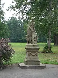 Jagdgöttin Diana mit Hund an der Schlosszufahrt