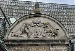 Wappen v. Wilhelm Wirich (Vorläufer des Mülheimer Stadtwappens) über dem Eingang des Hochschloss[3]