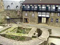 Innenhof des Schlosses Broich. Links: Hochschloss, Rechts: Westflügel