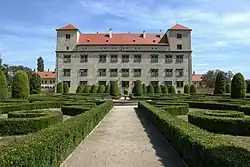 Sehenswert sind die kaiserlichen Räume und die Vogelkammer, welche in dieser Ausführung in Böhmen und Mähren einmalig sind. In den mit Groteskendekor bemalten Gewölben der Kaiserräume befinden sich vollplastische und teilvergoldete Reiterfiguren aus Stuck von Diana, Mars und Europa sowie des Kaisers Karl V.