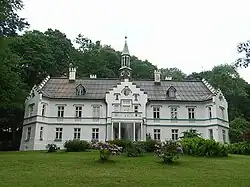 Zu dem Ensemble gehört das ehemalige Verwalterhaus, ein zweigeschossiger Satteldachbau mit Giebelbalkonen, das im Landhausstil errichtet wurde. Ein dazugehörendes Waschhaus mit Eiskeller wurde um 1900 errichtet, es ist ein eingeschossiger Zweiflügelbau mit einem Walmdach und Eckrustizierungen. Das Palmenhaus stammt aus der Zeit um 1870, es ist ein Fußwalmdachbau mit verglaster Südseite. Ebenso um 1870 wurde das Gewächshaus errichtet, ein langgestreckter Flachsatteldachbau mit Glasdach. Dazu gehört ferner eine Kegelbahn, ein langgestreckter Flachsatteldachbau, das mit Holzständerwerk über Bruchsteinmauern errichtet wurde, sowie ein Bienenhaus. Auf dem Anweisen befindet sich eine aus Bruchstein gemauerte Grotte. Die Hofmauer ist ebenfalls aus Bruchstein errichtet. Das Anwesen ist in einen Park im Stil eines englischen Landschaftsgartens eingebettet, der um 1870 angelegt wurde.