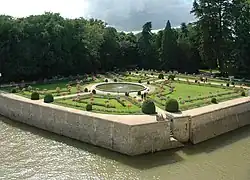 Zum Schloss Chenonceau gehören rund 80 Hektar[30] Garten- und Parkflächen, die sich auf zwei Renaissancegärten im italienischen Stil sowie einen großen, fast ausschließlich waldbestandenen Park verteilen.