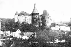 Schloss Clerf auf einer Fotografie der 1880er Jahre; rechts im Bild die nur wenig später niedergelegte Vorburg