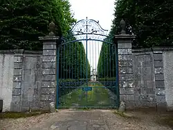 Gitter am Eingang mit anschließender Allee aus Hagebuchen