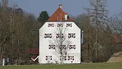 Das Schloss ist ein dreigeschossiger Bau mit einem Halbwalmdach und einem Konsolerker. Es ist im Kern spätmittelalterlich, der heutige Bau stammt aus dem 17. Jahrhundert.