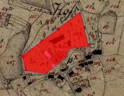 Das ehemalige Hofmark-Schloss Hof war ab dem 11. Jahrhundert Sitz der Eisenhofer, die sich nach dem Schloss benannten (Wiguleus Hund, 1585).[1] 1506 kam es in den Besitz von Dietrich von Plieningen. 1520 kaufte Leonhard von Eck (Ratgeber des bayerischen Herzogs Wilhelm IV.) den Besitz Eisenhofen mit dem Schloss. Als sein einziger Sohn Oswald von Eck Protestant wurde, geriet dieser in Schulden und musste das Schloss verkaufen. 1622 übernahmen es die Freisinger Bischöfe unter Veit Adam von Gepeckh. Nachdem das Schloss im Dreißigjährigen Krieg von den Schweden zerstört worden war, baute es Bischof Johannes Franziskus wieder auf.[2] Bis zur Säkularisation (1803) hatten die Bischöfe hier ihre Sommerresidenz. 1803 hat man den Westflügel abgebrochen. Später wurde das Schloss als Volksschule genutzt; Johannes Neuhäusler und Josef Grahamer gingen zum Beispiel dort zur Schule. Heute befindet sich das Schloss in Privatbesitz.[3]