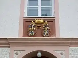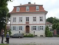 Das zweigeschossige Gebäude mit Mansardwalmdach wurde im Stil eines klassizistischen Landschlösschens errichtet. An der Nordseite befindet sich ein Treppenanbau, im Westen eine gegenläufige Treppe mit vasenbekrönten Pfeilern. Unter den Fenstern des Obergeschosses sind in Putzfeldern Triglyphengehänge zu sehen. Über dem Portal, das über eine Freitreppe zu erreichen ist, befindet sich das Allianzwappen Schnurbein-Schwarz.