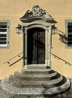 Das Schloss ist ein langer Bau in der Nähe der Veitskirche. Der verputzte Bau besteht aus einem massiven Erdgeschoss, einem Obergeschoss aus Fachwerk sowie einem Walmdach mit Giebelhaus.[1] Zum Gelände des Schlosses gehört ein Hof, der vom Schlossgebäude und zwei Scheunen eingefasst wird. Gegenüber der Straße befindet sich ein ummauerter Schlossgarten mit Resten der Gartenanlage des 18. Jahrhunderts.