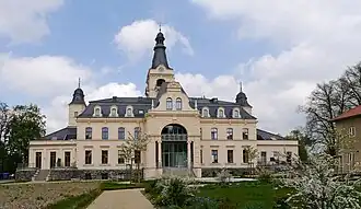 Schon 1873 veräußerte von Roon sein Schloss an den Bankier Gerson von Bleichröder, dieser bestimmte dazu formell keinen Erben.[4] Aber er leitete alsbald eine Neugestaltung des Herrenhauses in Formen der französischen, deutschen und italienischen Neorenaissance in die Wege. Der Bauherr ließ sich bei der Planung offenbar vom Umbau des Schloss Ferrières anregen, den der von ihm verehrte Jakob Rothschild 1855 in Auftrag gegeben hatte. Den Park gestaltete der königliche Oberhofgärtner Theodor II. Nietner um.[5]