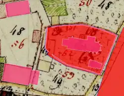 Lageplan von Schloss Geisling an der Stelle der Ortskirche Maria Geburt auf dem Urkataster von Bayern