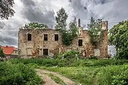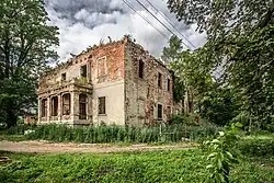 Das Schloss ist umgeben von einem Wassergraben, einem verwilderten Landschaftspark mit Erdböschungen und Wirtschaftsgebäuden aus dem Ende des 19. Jahrhunderts.