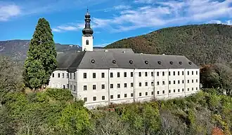 Dieser 1803 profanierte Bau, heute als Schloss bezeichnet, ist ein dreigeschoßiger Barockbau, die Nordseite mit burgenmäßigem Charakter. Durch zwei Torhäuser aus der Spätgotik, von denen besonders das zweite mit seinem zweijochigen Kreuzrippengewölbe interessant ist, gelangt man in den polygonen Hof (einst Leichenhof), in dessen Mitte die Kirche steht. An das zweite Torhaus schließt sich die 1,5 Meter dicke und 11,5 Meter hohe mittelalterliche (15., 16. Jahrhundert) Ringmauer mit Rechteckschießscharten an. Die frühgotische (14. Jahrhundert) zweijochige, dem heiligen Michael geweihte Abtkapelle hat zwei Zugänge. In ihrem unteren Teil befand sich einst ein Beinhaus (Karner). Im kurzen Westflügel ist der Stiegenaufgang zu den Wohnräumen, wahrscheinlich früher Gästezimmer und zur Empore der Abtkapelle.