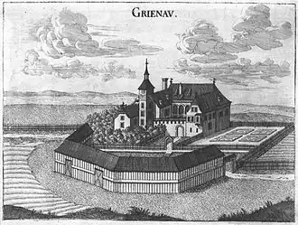 - ↑ a b Topographia Austriae superioris modernae. Augsburg 1674, S. 74, Nr. 61 (landesbibliothek.at – Schloss „Grienav“).