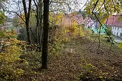 Ehem. Schloss, Quader und Bauspuren des Palas und eines Kellers, mittelalterlich; neben Haus Nr. 8.