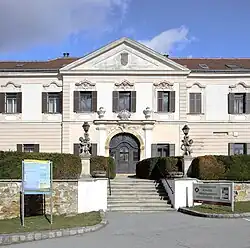 Die gestaffelte zweigeschoßige Vierflügelanlage entstand durch Ergänzung der im Kern aus dem 15./16. Jahrhundert stammenden und 1739 barockisierten Zweiflügelanlage des ehemaligen Pfarrhofes. Dieser bestand aus dem heutigen südwestlichen und südöstlichen Trakt und wurde 1980/81 um zwei weitere Flügel erweitert, die durch eine barocke Mauer und Portalanlage mit zweigeschoßigem Zweiflügelanbau aus den Jahren 1948 bis 1953 mit dem Altbestand verbunden sind.[1]