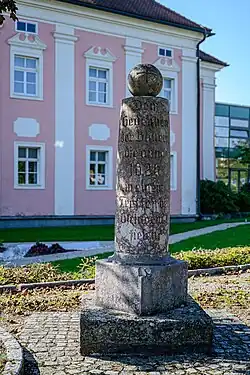 Vor dem Schloss erinnert eine 1976 aufgestellte Säule an die Schlacht von 1626.