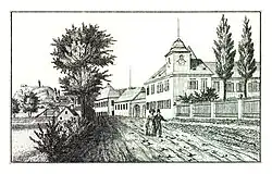 Das Schloss stand einst in Harmsdorf oder Hademarsdorf, das im Grazer Adressbuch noch im Jahr 1867 als eigene Verwaltungs- und Steuereinheit geführt wurde. 1849 kam es nach einer Bürgerbefragung, die einstimmig ausfiel, zur Zusammenlegung mit der Stadt Graz.