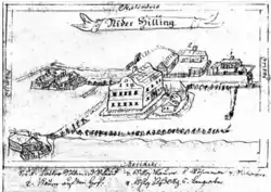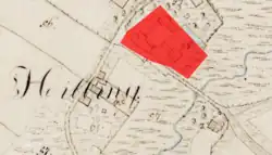 Das von einer breiten Weiheranlage umgebene Schloss Hilling lag in einem von der heutigen Dorfstraße und der Brunnholzstraße gebildeten Dreieck, nahe der Bina. Nach den Aufzeichnungen in dem Salbuch des Pfarrers Franz Anton Peckert von Aich (1790) war es ein zweigeschossiger Bau mit einer barocken Dachform. Das Schloss war von mehreren Bauernhöfen umgeben (No. 1 Falter-Sölde oder Schneider; No. 2 Bauer auf dem Hof; No. 3 Schloßbauer; Nr. 4 Schloß oder Edelsitz; No. 5 Rößenmann; Nr. 6 Langweber oder Weber unter der Feichten; Nr. 7 Stillweber).[3] Heute steht hier der „Schlossbauernhof“.