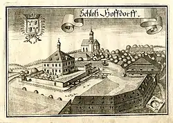 Es wird angenommen, dass die ortsadeligen Herren von Hofdorf im 12. Jahrhundert als Erbauer der Wasserburg in Frage kommen. Als erster Besitzer der Hofmark Hofdorf wird ein Bernhard Bschorn genannt. Im 13. Jahrhundert werden hier die Seemann von Mangern erwähnt. Diese hatten in Mangern, heute einem Gemeindeteil von Gerzen, ihren Stammsitz. Im 14. Jahrhundert erwarben sie die Hofmark Gottfrieding und Hofdorf. „Andre und Ulrich die Seeman“ werden am 23. Juli 1368 als Inhaber der Hofmark Hofdorf genannt. 1437 wird noch Hans der Seeman als Hofmarksherr genannt.[1] Nachfolger der Seemann wurden die Herren von Rohrbach (Rohrbecken). 1576 wird Christoph von Rohrbach zu Hofdorf als Vormund des Hans Sigmund zu Degenberg auf Posching genannt.[2] Ab 1580 ist die Hofmark im Besitz des Hanns Christoph von Amsham, über dessen Witwe Anna kommt sie 1619 an Georg Christoph von Closen. Ab dem 18. März 1626 wird die Hofmark an Hanns Wilhelm von Eisenreich verkauft, ihm folgt 1627 seine Witwe Anna Salome von Eisenreich. 1630 ist hier Johann Georg Khitter von Khirwitz, Hof- und Kriegsrat zu München, der die Witwe Anna Salome geheiratet hatte. 1652 folgt Christoph Benno Freiherr von Eisenreich und ab dem 27. Januar 1671 seine Witwe, Johanna Maximiliana Eisenreich. 1713 vererbte Maximiliana Johanna Freifrau von Eisenreich ihren Besitz zu Hofdorf an ihren Vetter Ferdinand Freiherr von Stromer zu Jetzendorf, der ihn 1740 an Baron von Lerchenfeld nach Mengkofen verkaufte.
