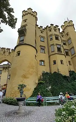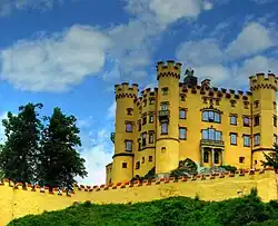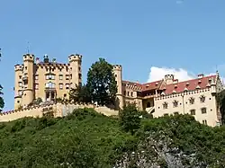 Schloss Hohenschwangau ist der Neugotik zuzuordnen. Ein Vorgängerbau „Schwanstein“ wurde 1397 erstmals urkundlich erwähnt. Über die Jahrhunderte wurde die Burg stark beschädigt. 1832 erwarb Kronprinz Maximilian die Burg und ließ diese in das heutige Schloss umbauen. Nach seinem Tod übernahm sein Sohn, König Ludwig II., das Anwesen und ließ es nach seinen Vorlieben dekorieren. Das Schloss liegt direkt gegenüber dem für Ludwig II. erbauten Schloss Neuschwanstein im Ortsteil Hohenschwangau der Gemeinde Schwangau bei Füssen in Bayern.