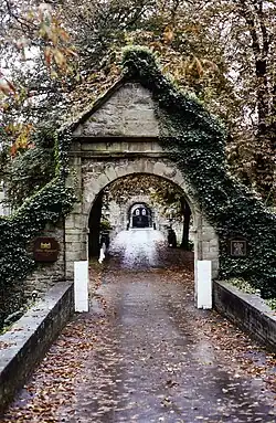 1904 beging der preußische Offizier Joseph von Fürstenberg (1868–1904) unter der Brücke des Schlossweihers Suizid, indem er sich erschoss.[2] Fürstenberg, der als zweiter Sohn des Kammerherrn und Rittmeisters Friedrich Leopold von Fürstenberg (1828–1910) geboren wurde, geriet in die Harden-Eulenburg-Affäre, des deutschen Journalisten Maximilian Harden. Wenige Tage vor seinem Selbstmord kam er von seiner Hochzeitsreise mit Helene, der Tochter vom Zentrumspolitiker und preußischen Landwirtschaftsminister Clemens Freiherr von Schorlemer-Lieser zurück. Adolf Brand verbreitete nach dem Tod, das sich im Nachlass des Toten Erpresserbriefe befunden hätten.