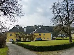 Unmittelbar nördlich vom Schloss befindet sich ein barocker Meierhof mit einem zweigeschoßigen Arkadenhof. An der Mauer des Erdgeschoßes befinden sich das Relief einer Antoniusfigur sowie ein 1,20 Meter breites Fragment eines römerzeitlichen Grabreliefs.