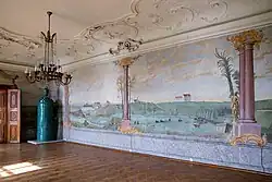 In den 1950er Jahren wurden im größten Saal des Schlosses, dem Spielzimmer, so genannt, weil darin früher Federball gespielt wurde, Wandmalereien entdeckt und freigelegt. Die Malereien stellen die Besitztümer der älteren Linie der Familie Hardegg dar. Die damalige Eigentümerin, Gräfin Mechthild von Hardegg, geb. Freiin von Sturmfeder, hatte eine künstlerische Hand, sie restaurierte die Malereien selbst. Die Gräfin war die kinderlose Witwe des letzten Majoratsherrn Johann Friedrich von Hardegg in Stetteldorf, er ist in den letzten Kriegstagen 1945 gefallen.