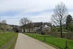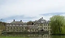Die beiden Vorgebäude nach einem Entwurf von Nagel, sind im Stil stark an Bauten Wehmers angelehnt. Das westliche mit dem Allianzwappen von Weichs und von Westrem ist mit 1731 bezeichnet, das östliche mit dem Allianzwappen von Weichs und von Galen ist mit 1743 bezeichnet. Die südlich angebaute Remise wurde mit einem Glockentürmchen bekrönt. In der Mitte der dreiflügeligen Ökonomie springt ein Torrisalit hervor. Am Westflügel steht das Torhaus von 1736, es wurde 1850 aufgestockt. Der Terrassengarten mit parabelförmigem Grundriss ist über eine Zugbrücke erschlossen.