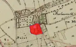 Das am südlichen Dorfrand gelegene ehemalige Landsassengut ist ein L-förmiger zweigeschossiger Walmdachbau mit Granitrahmungen. Das Portal weist die Jahreszahlen 1623 und 1819 auf, ein Beleg, dass das Gebäude mehrfach umgestaltet wurde.