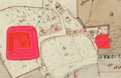 - Schlossgraben, wohl spätmittelalterlich, an drei Seiten erhalten