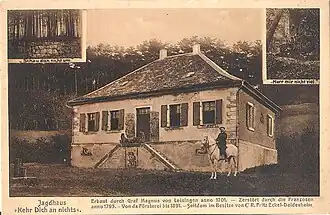 | • Jagdschloss Ende des 18. Jahrhunderts niedergebrannt • während der bayerischen Zeit einstöckig wieder aufgebaut • Forsthaus – Gaststätte – Wohnhaus | ||