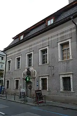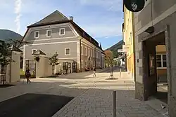 Die ersten Häuser hier waren 1450 ein Holzhaus mit Badstube und gemauertem Kasten sowie ein sogenanntes Stöckl von 1419. Der Umbau der angekauften Häuser zu einem Palais war 1598 abgeschlossen. Durch den Marktbrand von 1742 wurde dieser Bau schwer beschädigt, konnte aber durch den Lambrechter Baumeister Fidelis Hainzl in Form eines Barockpalais neu aufgebaut werden. An der Neugestaltung wirkten bedeutsame Künstler der Zeit mit, so etwa der Maler Gregor Lederwasch IV., der Stuckateur Giovanni Gaetano Androi, der das Hauptportal schuf; der Salzburger Kunstschmied Philipp Hinterseer schuf das schmiedeeiserne Allianzwappen Kuenburg-Rollingen für das Eingangstor. Der 1745 angelegte Schlosspark mit den alten Baumbeständen ist zwischenzeitlich umgewidmet worden. Im Hauseingang ist eine Inschrift aus der 1790 abgebrochenen Kapuzinerkirche, die an den Erbauer dieser Kirche von 1671, Erzbischof Max Gandolf von Kuenburg, erinnert.
