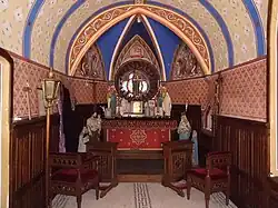 Die Schloss ist eine nahezu quadratische Anlage mit einer Seitenlänge von etwa 50 Metern.[5] Die Ecken werden von vier durch Kurtinen verbundene Rundtürmen markiert, wobei der Nord- und Ostturm zugleich Ecktürme des Corps de Logis an der nordwestlichen Seite des Gevierts sind. Der traditionelle Zugang befand sich an der Südost-Seite. Der dortige Torbau besitzt einen spitzbogigen Tordurchgang, über dem sich ein Wurferker befindet. Früher besaß das Tor zusätzlich noch ein Fallgatter. Heute befindet sich der Zugang an der südwestlichen Seite der Schlossanlage. Von dort gelangt der Besucher in einen Schlosshof mit mittig angelegtem Rondell. Von dort ist das zweigeschossige Corps de Logis des Schlosses zugänglich. Der längsrechteckige Bau nimmt die gesamte Nordwest-Seite der Schlossanlage ein und besitzt zwei kurze Seitenflügel. Im nördlichen Winkel von Corps der Logis und Nordflügel erhebt sich der quadratische Bergfried mit Zinnenkranz und Maschikulis. In seinem unteren Teil befindet sich die Kapelle mit Rippengewölbe und neugotischen Wandmalereien, die biblische Motive zeigen. Letztere stammen von Anatole Dauvergne und wurden von ihm 1860 während der Restaurierung unter Victor de Matharel angefertigt.[6] Auch die malerische Ausgestaltung des Treppenhauses stammt von diesem Künstler. Sie zeigt 70 Wappen der Großmeister des Malteserordens. Ein weiteres kunsthistorisch wichtiges Ausstattungsstück des Schlosses ist ein Kamin im Erdgeschoss, der mit seiner Inschrift an die Zerstörung der Vorgängeranlage 1592 während der französischen Religionskriege erinnert.