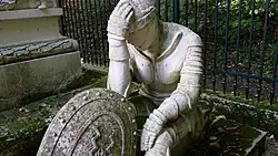 Den Ort für seine Begräbnisstätte hat Feldmarschall Laudon selbst festgelegt. Zunächst war dafür eine Anhöhe über dem damaligen Tiergarten angedacht (daher stammt die Statue im Schlosspark). Später entschied sich Laudon für einen Platz im „türkischen Gärtchen“. Dort wurde er auch tatsächlich, nachdem seine Leiche aus Neutitschein nach Hadersdorf überführt worden war, beigesetzt.[7] Die unterirdische Gruft war anfangs nur mit einem einfachen Erdhügel überdeckt. Laudon hatte sich gewünscht, dass sein Grabmal aus den von ihm aus Belgrad mitgebrachten türkischen Steinen zusammengefügt werden sollte. Seine Witwe Klara verweigerte aber nachträglich diesen Plan und ließ stattdessen bei dem Bildhauer Franz Anton Zauner ein klassizistisches Grabmal in Auftrag geben, das 1791 fertiggestellt wurde. Es hat die Form eines Quaders mit einem Giebeldach und ist auf allen vier Seiten mit Relief-Tondi mit mythologischen Figuren geschmückt. An den beiden Längsseiten befinden sich lateinische Inschriften: Eine Widmung von seiner Witwe und seinen Erben (… coniux … ac haeredes pos[uerunt] MDCCLXXXX – errichtet von der Witwe und den Erben 1790) und eine Würdigung seiner militärischen Verdienste (tiro ad Borysthenem, dux ad Moraviam, Viadrum, Boberim, Neissam, Vistritiam; veteranus ad Unnam, Istrim, Savum – als Rekrut an den Dnjepr, als Anführer an die March, Oder, Bober, Neisse und Bystritza, als Veteran an Una, Donau und Save). Neben dem Grabmal befindet sich als Grabwächter die lebensgroße Figur eines trauernden Ritters.