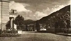 Das zwischen 1835 und 1840 von Graf Almásy erbaute Schloss war Sommersitz des Dichters Albrecht von Wickenburg und seiner Ehefrau Wilhelmine, geborene Gräfin Almásy. Nachdem es um 1912 im Besitz von Albert von Ettingshausen gekommen war, war es von 1925 bis 1939 an den Möbelhersteller Thonet verpachtet, der darin ein Musikzimmer mit dem Hauptwerk von Josef Maria Auchentaller sowie mit Mobiliar von Otto Wagner, Marcel Kammerer und Otto Prutscher einrichtete. Thonet-Mundus war zu diesem Zeitpunkt der größte Möbelhersteller der Welt.[1]