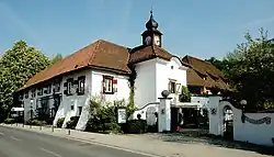 Der langgestreckte, aufgegliederte Bau mit zwei Geschoßen stammt im Kern aus dem 16. Jahrhundert und war vermutlich der Meierhof der Burg Leonstein. Erneuerungen des 19. und 20. Jahrhunderts wurden dem Renaissancebau angepasst. Das Objekt befindet sich im Privatbesitz der Familie Neuscheller und wird heute als Hotel „Schloss Leonstain“ geführt. Der fünf- beziehungsweise sechsachsige Bau umschließt einen kleinen Innenhof mit Brunnen und Renaissancelöwen. Im Obergeschoß befindet sich ein umlaufender, auf Kragsteinen abgestützter Laubengang; ein Raum des Obergeschoßes präsentiert sich mit profilierten Rahmenstukkaturen an seiner Flachdecke und wurde 1598 geschaffen. Am Westtrakt zieht eine überdachte Eckaltane mit Zwiebelhelm von 1937 die Blicke auf sich. Der straßenseitige Trakt präsentiert sich mit dem Eingangstor, darüber sieht man das Wappenfresko Leonstain und die Bezeichnung 1598. Die Zubauten an der Ostseite sind modern gehalten; ihre Fassadengliederung mit Arkaden auf Renaissancesäulen stammen von 1956 und 1972. Der östliche Vorbau mit Dachreiter hat seinen Ursprung im Jahr 1964 und ein stilistisch angepasster Anbau an der Nordost-Ecke entstand im Jahre 1956.