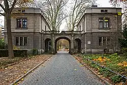 Nur einige wenige Architektur-Reste von Schloss Linden haben sich im Von-Alten-Garten erhalten, darunter die[1] – ebenfalls denkmalgeschützten[15] – Torhäuser[1] in der Park- und ehemaligen Schlosszufahrt am Ende der Von-Alten-Allee.[15] Diese – jüngeren – Gebäude waren allerdings erst zur Zeit des Deutschen Kaiserreichs im Jahr 1911 im Stil des Neobarock errichtet worden.[7]