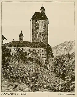 Das Schloss Mariastein und die Ortschaft Mariastein liegen links und oberhalb des Inns zwischen Wörgl und Kufstein im Bezirk Kufstein/Tirol. Ursprünglich hieß diese Burg Stayn (Stain), nach der Erbauung der Gnadenkapelle und dem Beginn der Marienwallfahrt 1587 wurde sie in Mariastein umbenannt.