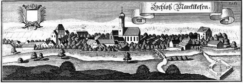 Das Schloss Marklkofen war der Sitz der Zachreis von der Lieb (eig. Liebertsöd, ein Ortsteil von Marklkofen). Als erster dieser Familie erscheint 1367 ein Eglof Zachreis. Sein Sohn oder Bruder Wilhelm Zachreis verstarb 1423 in Marklkofen und wurde hier auch begraben. Der Sitz wird 1498 genannt, als Meister Hanns Margk, Pfarrer zu Frontenhausen, und andere beurkundeten, dass Martin und Adam Zachreis sich über den von ihrer Mutter, Elisabeth Zachreis, hinterlassenen Sitz geeinigt haben. Vor 1612, dem Todesjahr der Maria Magdalena Zachreisin von Marklkofen und Reicheneibach, die mit Wolfgang Tattenbeck zu Tattenbach verheiratet war, kam der Sitz an die Tattenbachs. Nach deren Aussterben gelangte der Sitz an die Arcos. Sidonia Zachreisin brachte den Sitz wieder in ihre Hand; durch ihre Heirat mit Johann Georg von Puchberg erhielt dieser um 1600 Besitzrechte in Marklkofen. 1609 kaufte er das zweite Schloss in Marklkofen, das sogenannte Thurmschloss. 1649 erlosch die Familie der Puchberger mit Hans Wilhelm Puchberg. Dessen Tochter Sidonia war mit Franz Freiherrn von Gumppenberg verheiratet und sie bewohnten das Thurmschloss zu Marklkofen. Durch die Heirat der Johanna Franziska von Gumppenberg mit Johann Wilhelm Freiherrn von Lerchenfeld zu Gebelkofen kam die Hofmark an die Lerchenfelds, dann an die Machtling und schließlich nach 1743 an die Freiherrn von Imsland. Daher wurde dieser Adelssitz auch Imslandschloss genannt.[1]