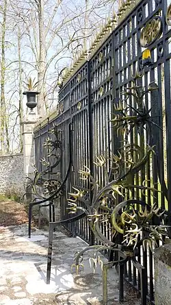 Das Schlossareal ist von einer Mauer eingefasst, die zum Teil eingestürzt ist. Den Zugang zum Schloss gewährt ein kunstvolles, schmiedeeisernes Gittertor an der Nordseite. Es trägt die Initialen des Bauherrn Charles de Rancher, seigneur de Maudétour.