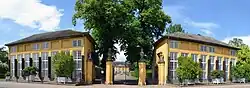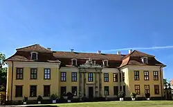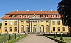 Erste Entwürfe stammen vermutlich von dem Sanssouci-Architekten Georg Wenzeslaus von Knobelsdorff. Der eigentliche Baumeister war der Dessauer Hofbaumeister Christian Friedrich Damm, den Anna Wilhelmine 1752 mit der Errichtung des Sommersitzes beauftragte. Um den Ehrenhof liegen Corps de Logis, Kavaliershäuser und Wirtschaftsbauten.
