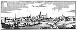Die alte Burg bzw. das alte Schloss lag an der Spitze des geschilderten Dreiecks. Die älteste Bebauung wird im Bereich des heutigen Pfarrhofes und der Stadtpfarrkirche vermutet; der heutige Kirchturm ist früher wahrscheinlich der Bergfried der Burg gewesen. Im Laufe der Zeit wurden weitere Teile östlich des Burggrabens in die Befestigung einbezogen. Hier wurde dann ein neuer Halsgraben errichtet und mit Mauern abgesichert; der frühere Burggraben wurde so zu einem Abschnittsgraben. Die Anfang des 14. Jahrhunderts begonnene Burg- und Stadtbefestigung wurde im 15. Jahrhundert vollendet. Bereits der Hussiteneinfall von 1418 soll an den Mauern der Stadt gescheitert sein. Herzog Johann der Neunburger soll die Befestigungsanlagen verstärkt haben. Die Befestigung besteht aus einer Ringmauer mit einem vorgelegten Zwinger und Mauertürmen. An der Südseite lag davor ein breiter Weihergraben, ebenso vor dem östlichen Halsgraben.