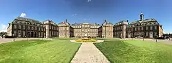Doch auch nach diesem Großereignis erfuhr das Schloss noch weitere, tiefgreifende Veränderungen, denn Kaiser Wilhelm II. hatte angekündigt, während der großen Kaisermanöver im Münsterland Anfang September 1914 sein Hauptquartier im Schloss aufschlagen zu wollen. Der Herzog befürchtete Platzprobleme bei der Beherbergung der kaiserlichen Entourage, und so ließ er 1913/1914 die bisher frei stehenden Seitenflügel des Schlosses durch Pavillonbauten im Stil des Neobarocks mit dem Corps de Logis verbinden, um zusätzlichen Wohnraum zu schaffen. Die Pläne dazu lieferte der Direktor des Bauamts des Westfälischen Bauvereins, Albert Josef Löfken. Das Schloss wurde mit dieser Erweiterung seinem Vorbild, dem Schloss Versailles, noch ein wenig ähnlicher, und erst seit der Arenberger Zeit ist für die Nordkirchener Schlossanlage der Beiname „Westfälisches Versailles“ nachweisbar.[62]