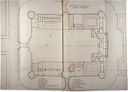 Der Fürstbischof von Münster, Friedrich Christian von Plettenberg-Lenhausen, erwarb das landtagsfähige Gut Nordkirchen am 24. Oktober 1694[21] für 250.000 Reichstaler[22] und vergrößerte den Besitz sowie den Einflussbereich durch Zukauf weiterer Ländereien und Gerichtsbarkeiten in der Umgegend. Anschließend brachte er ihn am 15. September 1695 in einen mit seinen lebenden vier Brüdern begründeten Familienfideikommiss ein.[23] Danach begann er damit, das bestehende Wasserschloss zu einem repräsentativen Stammsitz seiner Familie auszubauen, denn bisher besaßen die von Plettenberg nur altertümliche Herrensitze im Sauerland. Für den geplanten Umbau und die Modernisierung der vorhandenen Gebäude engagierte er 1697 Gottfried Laurenz Pictorius, der anfänglich nur kleinere Umbauten vorsah. Ab März wurde Pictorius bei den Planungen durch den aus Den Haag stammenden Jacob Roman unterstützt. Er war Hofarchitekt des Statthalters der Niederlande und hatte zusammen mit Daniel Marot für Wilhelm III. von Oranien das Schloss Het Loo in der Nähe von Apeldoorn errichtet, das als Vorbild für den Neubau diente. Ab 1699 arbeitete auch Pictorius’ jüngerer Bruder Peter an den Nordkirchener Plänen mit. Ein Entwurf, zu dem zusätzlich Steven Jacobsz Vennekool Anregungen gegeben hatte, fand 1702 endlich die Zustimmung des Kirchenfürsten und wurde von ihm zur Ausführung genehmigt. Er sah nicht mehr nur einen Umbau der bestehenden Gebäude vor, sondern deren Abriss und einen vollständigen Neubau im Stil des französischen Barock-Klassizismus.