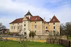 Die Burg wird nach wie vor von einem Ringgraben, über den eine steinerne Brücke zum Tor führt, umgeben. Das Rundbogenportal im Torturm ist mit einer Sonnenuhr verziert. An der Nordwestecke befindet sich ein zweiter, viereckiger Turm. An drei Seiten des Hofes befinden sich Arkadengänge aus der Renaissance. Neben dem Schloss liegen das Wirtschaftsgebäude und das Gasthaus zum Schwarzen Adler.