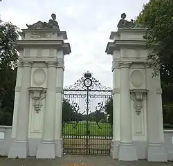 Louise Henriette beauftragte ebenfalls Johann Gregor Memhardt mit der Planung und Ausführung eines Lustgartens südwestlich vom Schloss, der typisch holländisch, nicht streng auf das Schloss ausgerichtet war. Das von einer Mauer umgebene Areal war fast quadratisch und streng geometrisch gegliedert. In der Mitte befand sich auf einer kleinen Anhöhe ein als „Grotte“ bezeichnetes kleines Lusthaus. Der Garten selbst diente vorrangig der Kultivierung von Bäumen, Ziersträuchern, Blumen sowie Gemüse. So führte die Kurfürstin u. a. Kartoffeln und Blumenkohl in der Mark Brandenburg ein. Auf Veranlassung von Luise Henriettes Sohn, Kurfürst Friedrich III., entwarf dessen Architekt Johann Arnold Nering 1690 das repräsentative Eingangsportal. Die Eingangspfeiler mit vorgelegten toskanischen Säulenpaaren werden von den allegorischen Figuren „Herbst“ und „Sommer“ bekrönt. Sehenswert ist auch das schmiedeeiserne Portal mit dem Monogramm des Kurfürsten und dem Kurhut.