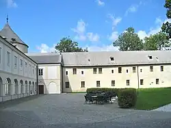 Das ehemalige Wasserschloss wurde 1523 unter Wolfgang von Rogendorf gegründet. Die anfänglich vierseitig konzipierte Anlage wurde um eine mittelalterliche Burg errichtet, die bis ins 18. Jahrhundert bestand.