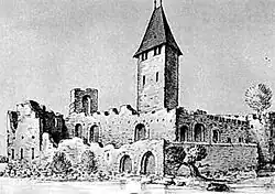 Landrich von Dornach (Landri de Durnes), von 1159 bis 1179 Bischof von Lausanne, gilt als der Erbauer eines Wohnturms am damaligen Fluss namens Ouchy. Um das Jahr 1207 wurde der Turm von Graf Thomas de Maurienne zerstört, um kurz danach von Bischof Roger I. von Vico Pisano (1177–1212) wieder aufgerichtet zu werden. Seit 1273 wird das Bischofshaus von Ouchy erwähnt, ab 1283 ein Schloss (castrum) als bischöflicher Wohnsitz.[1]