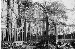 Der Kirchgarten orientiert sich am deutlichsten an englischen Vorbildern. Hier ist der Boden leicht gewellt, der Hauptweg weist auf die Mitte des Schlosses und bildet die zentrale Achse des ganzen Ensembles. Zwei typische Staffagebauten am Rande dieses Abschnitts – die Kirche und das Gotische Haus – bereichern die Anlage. Der Kirchgarten war nach 1918 landwirtschaftlich genutzt worden, später verwilderte er und wurde ab 1975 wieder hergerichtet.